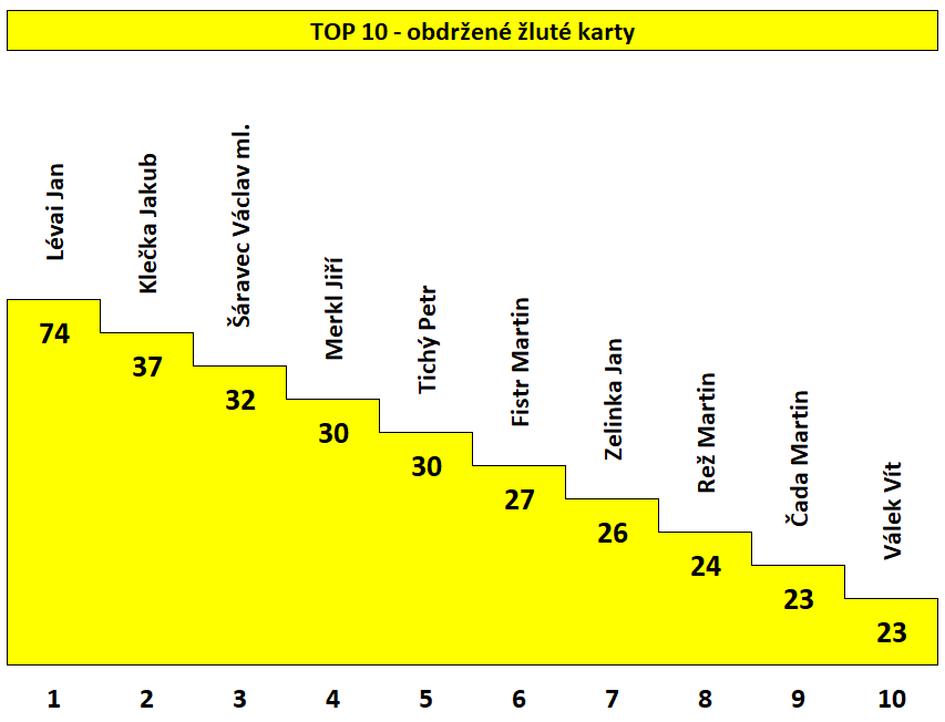 | Počet hráčů Jiskry, kteří obdrželi ŽK | 74 |