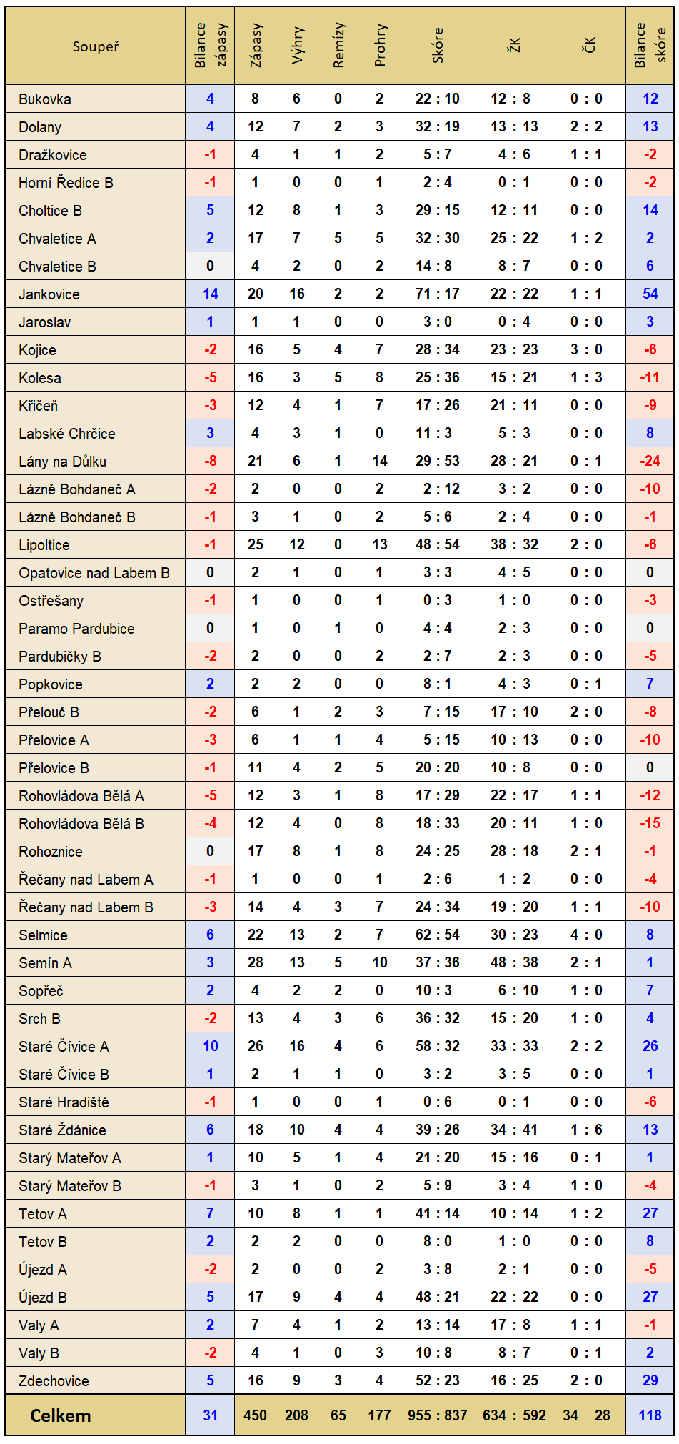 | Histrorická bilance | |