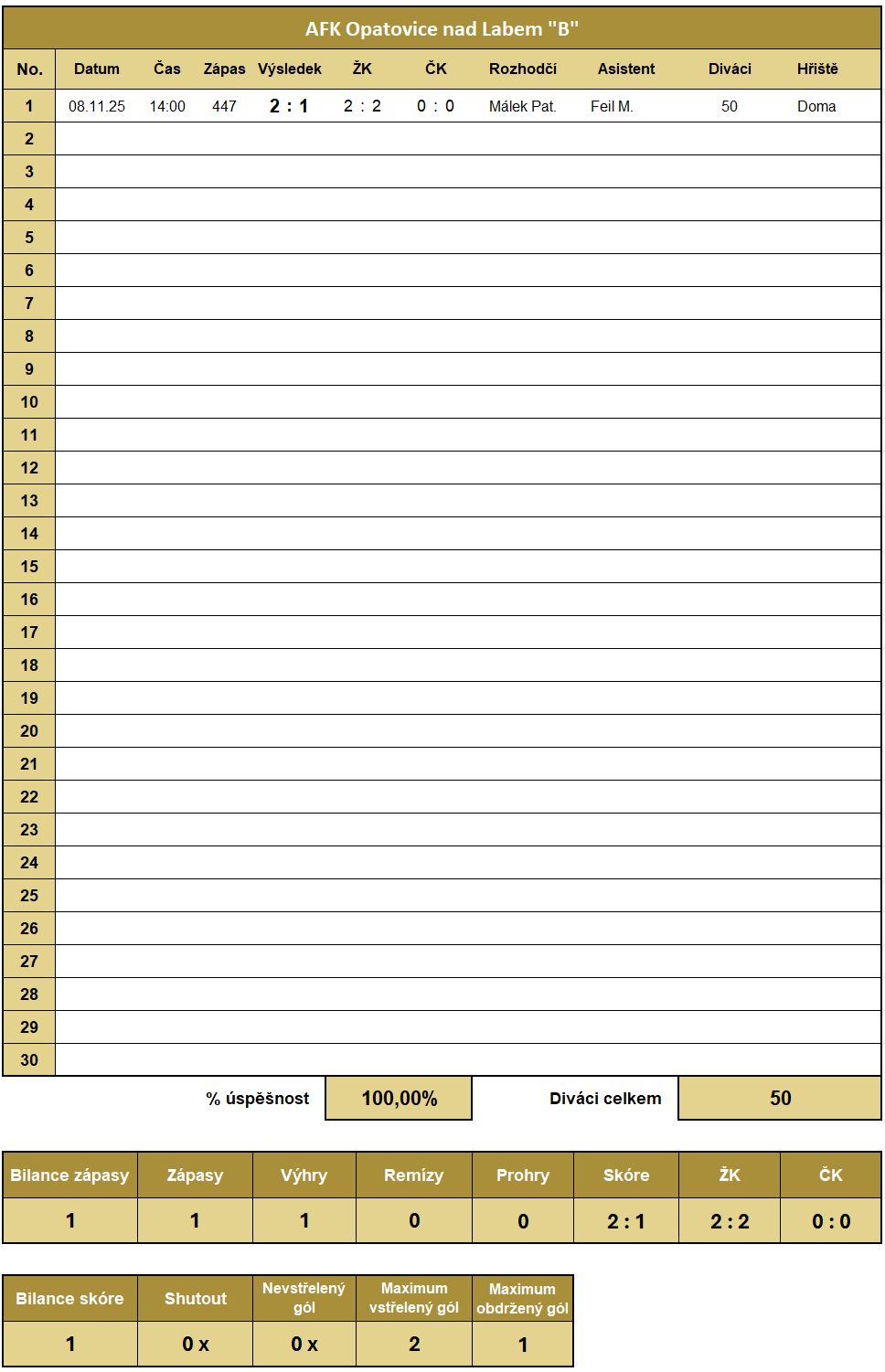 | Zápasy | 1 |